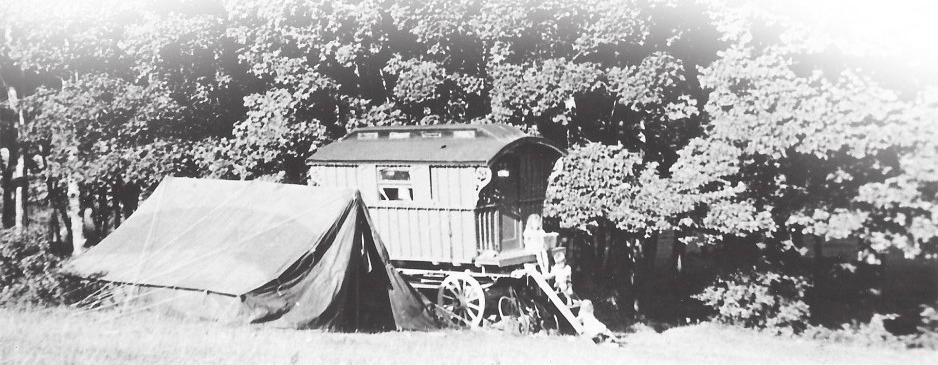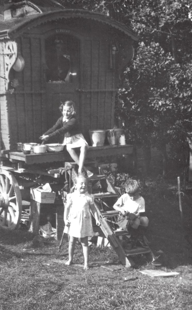 我的父母为度假买了一辆吉普赛人大篷车,把它安放在奥斯明顿米尔斯的场地上,其地邻近韦茅斯,在不列颠南海边上。吉普赛的原主曾把这大篷车装修得美仑美奂。我父亲将它全部漆成绿色,使之不那么引人注目。这大篷车有一张父母睡的双人床,还有在下面给孩子们睡的密柜,但我父亲利用军队备用担架把它改成带梯子的双层床,而我们父母睡在隔壁的军队备用帐篷中。一直到县政会在1958年最终设法把这大篷车移走为止,我们都在那里过暑假。