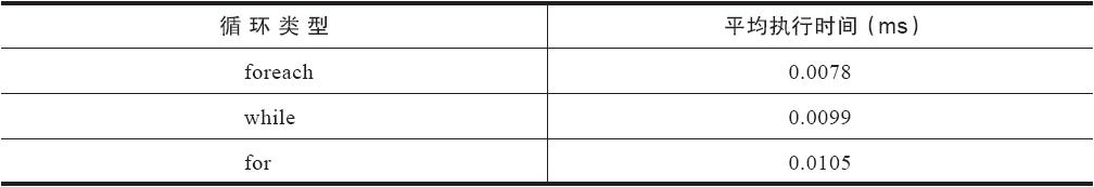 由此可见,使用foreach循环是访问数组元素性能最优之方法。感兴趣的朋友也可以自己来尝试一下。