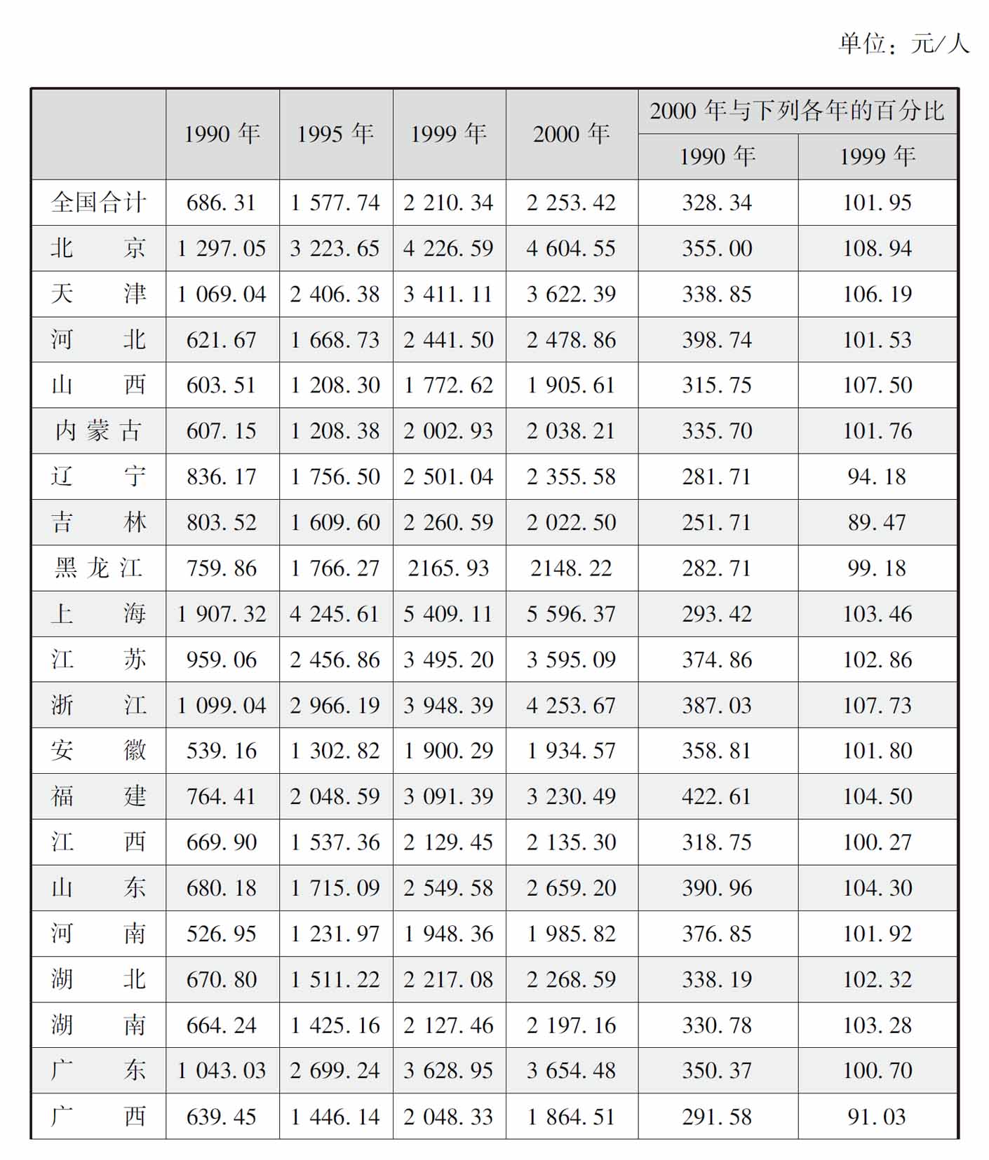 从表2可以看出,1990年以来,我国农村居民纯收入保持了一定的增长速度,但同时东、中、西三地区农村居民纯收入水平差异很大,而且差距还在迅速扩大。