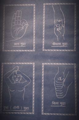 ● 手印的主要来源是《格兰达本集》( Gherandya Samhita )及《 Hathyoga Pradipik 》。《格兰达本集》由圣人格兰达( Gherandya )撰写,《 Hathyoga Pradipik 》由来自纳撒尼尔传统的斯瓦米·Pt.斯瓦特马兰( Swami Pt. Swatmaram )撰写,后续撰稿者是斯瓦米·萨特扬兰德·萨勒斯瓦提( Swami Satyanand Saraswati ),他是比哈尔(Bihar)瑜伽学校的创始人。手印是瑜伽练习的基本形式,比哈尔瑜伽学校出版的最有名的书,书名叫《体式、调息术、手印、收束法》。
