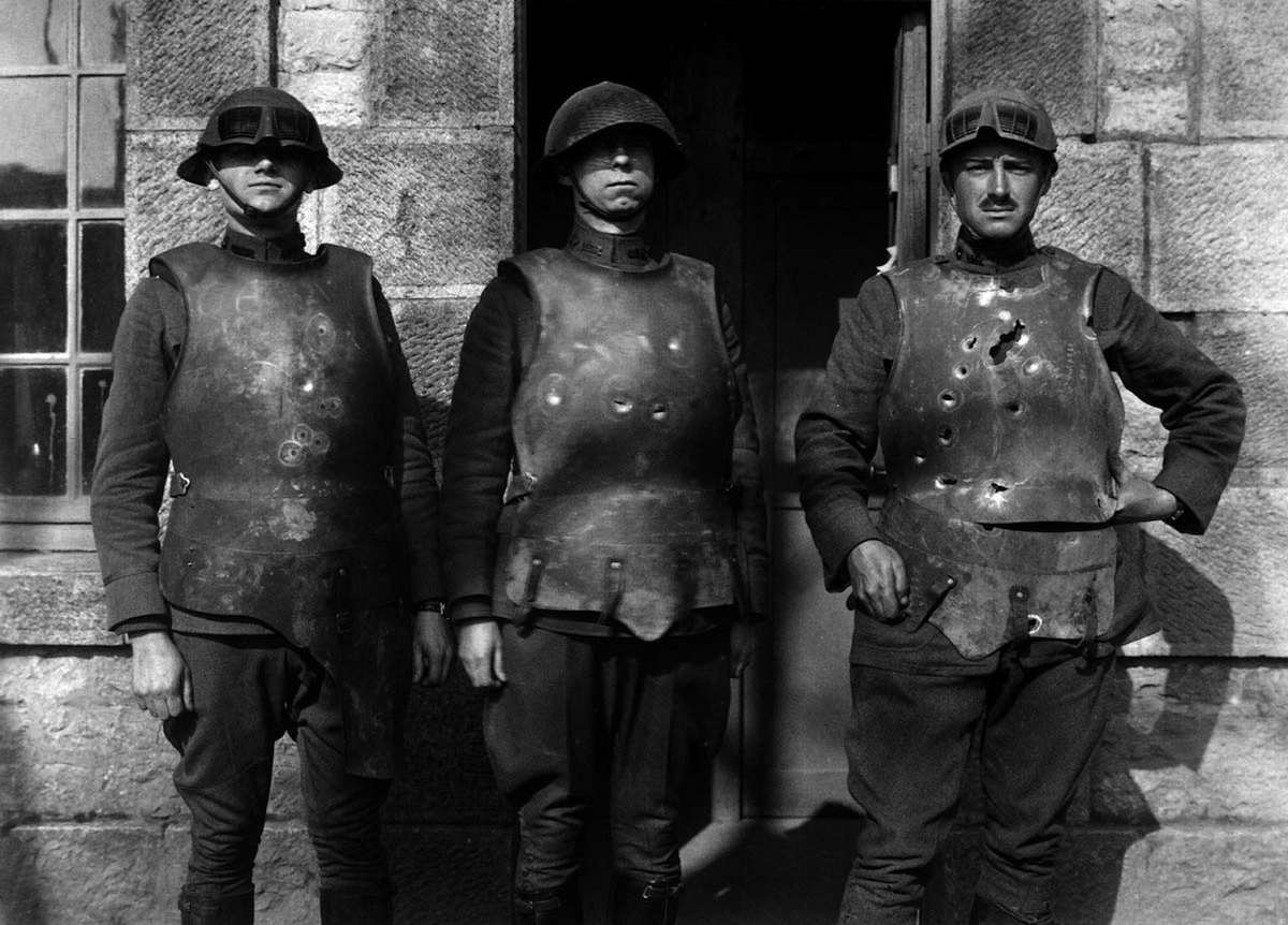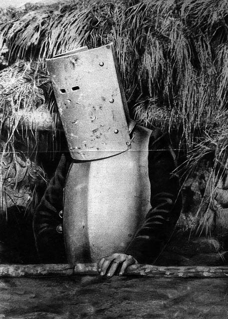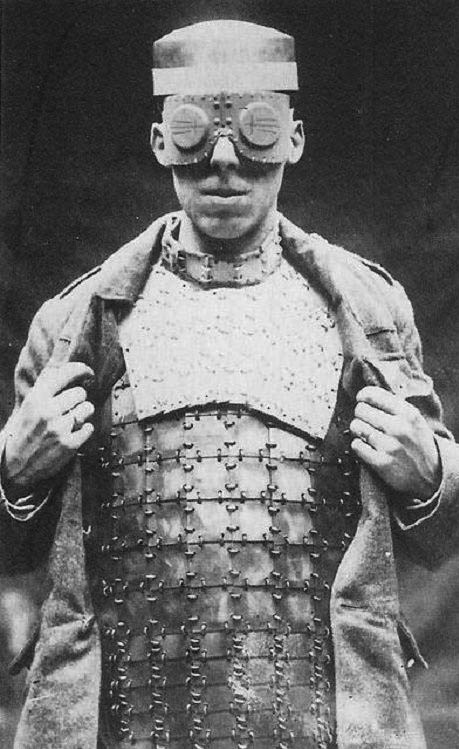 令人有些惊奇的是,曾经以自己的出现而宣告冷兵器时代重要战具之一的装甲“死亡”的火器,竟然在规模空前的第一次世界大战中“召唤”了装甲死而复生、重临战地。当身着各色卡其布军装的士兵们在一战泥泞的战场上惨遭轻重火力屠戮的时候,多个交战国的军事领导者都在寻找让战士们在枪林弹雨下提高生存率的手段。于是乎,曾作为中世纪武力标志物之一的盔甲又重新回到了人们的视野。