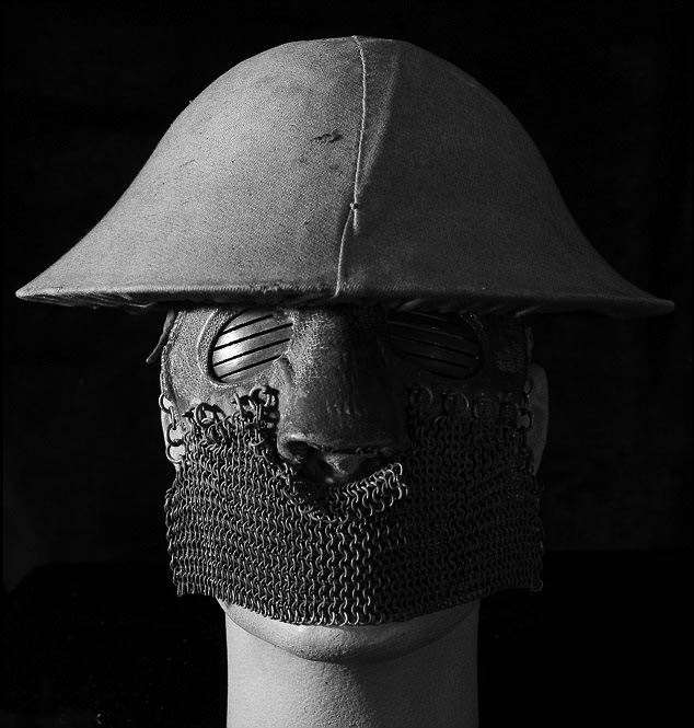 几天之后,一位姓施瓦伯(Schwerd)的陆军上尉在会议上提出了他的创想,这是一种配合头盔使用的钢质面具,厚度约5毫米,重1千克,使用时通过插销固定在头盔上,可以对士兵的面部起到很好的防护作用,不用时则可以收纳在单兵野战背包里。施瓦伯介绍说:“这就好比是火炮上的防盾。”与会者赞成他的看法,于是面具成为德军采购的单兵制式装备之一,尽管装备数量并不多。凡尔登会战期间,德军的面具式头盔首度亮相,在一定程度上让人想起了中世纪戴面罩的骑士头盔。