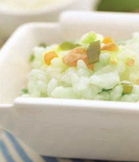 ③ 待粳米快熟时,加入涌溪火青茶粉和牛奶,搅拌均匀,继续熬煮。