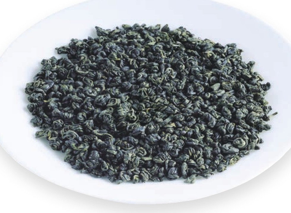 外形腰圆,色泽墨绿,白毫隐伏。
