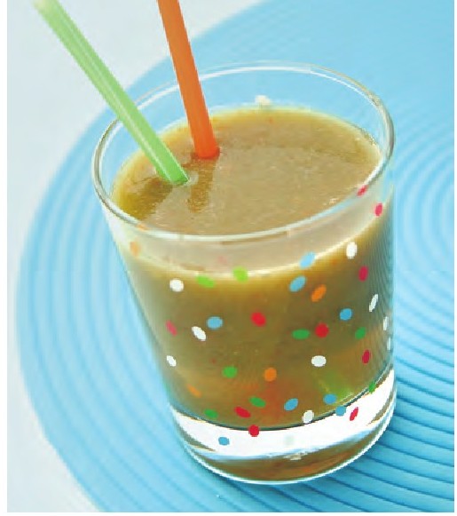 香蕉中所含的钾能防止血压上升和肌肉痉挛,所含的镁具有消除疲劳的效果;苹果特有的香味可以缓解压力、放松情绪。此款蔬果汁能补充均衡的营养,并具有健脑益智的作用。