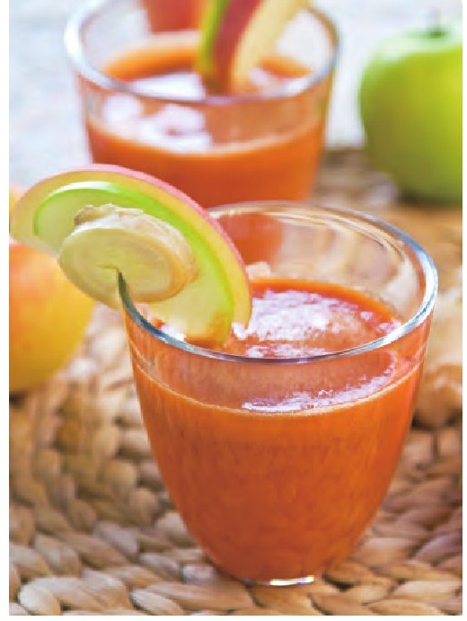 胡萝卜含有丰富的维生素A,能够增强身体的免疫能力;柠檬的香气清爽醒脑,而且柠檬还能够促进胃中蛋白分解酶的分泌,增加胃肠蠕动。此款蔬果汁口味清淡,是健脑提神、增强体质的佳品。