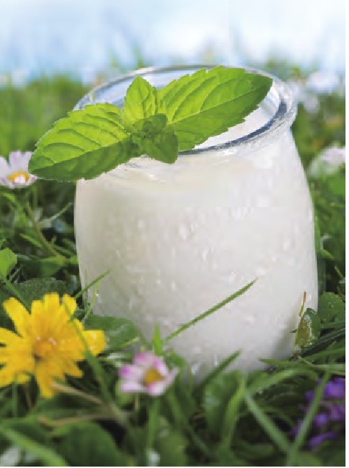 3.将蔬果汁倒入杯中,加酸奶搅匀即可。