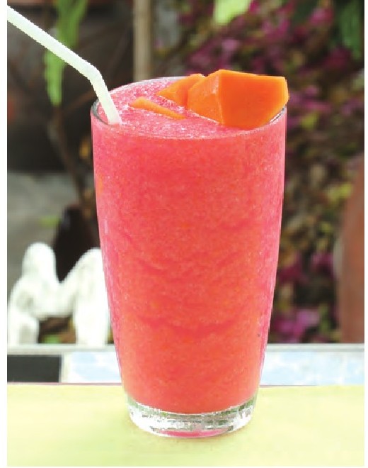 3.将菠菜、木瓜、酸橙放进榨汁机榨汁即可。