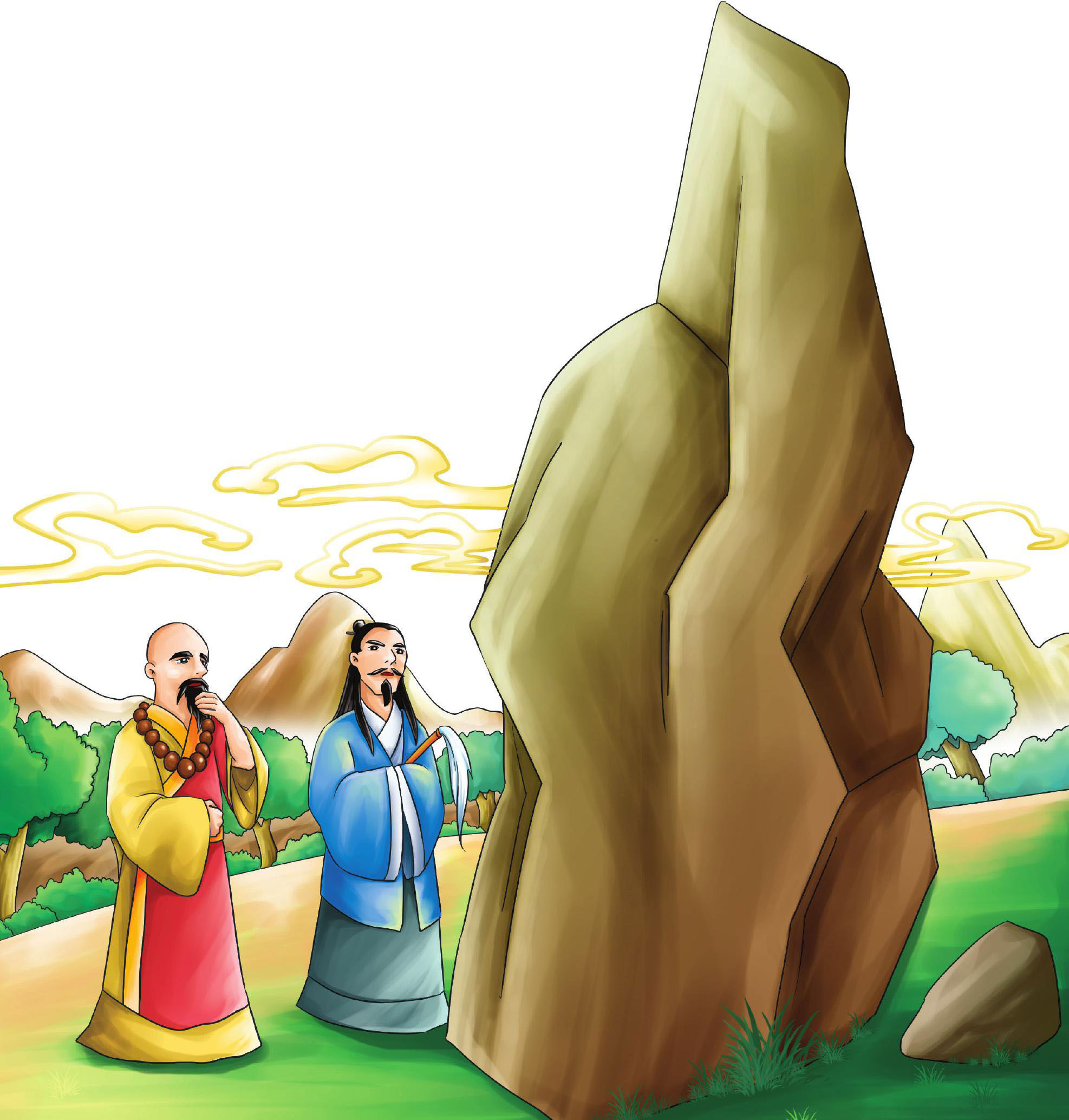 有 一 天 , 一 个 癞 头 和 尚 和 一 个 跛 脚 道 士 来 到 这 块 石 头 旁 , 他 们 一 边 休 息 , 一 边 谈 论 人 世 间 的 奇 妙 事 。 石 头 听 后 心 想 , 反 正 自 己 已 经 没 法 儿 补 天 了 , 不 如 到 人 间 去 享 受 一 下 荣 华 富 贵 吧 ! 于 是 , 它 把 这 个 念 头 告 诉 了 和 尚 。 和 尚 见 它 挺 有 灵 性 , 便 答 应 了 , 把 它 变 成 一 块 美 玉 , 带 入 人 间 。