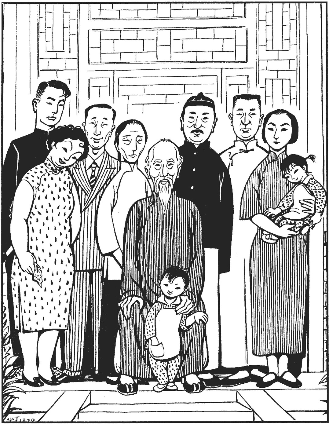 二号的院子里住着三家人,房子可是李四爷的。祁老人的喜欢李四爷,倒不是因为李四爷不是个无产无业的游民,而是因为李四爷的为人好。在他的职业上,他永远极尽心,而且要钱特别克己;有时候他给穷邻居搬家,便只要个饭钱,而不提工资。在职业以外,特别是在有了灾难的时节,他永远自动的给大家服务。例如:地方上有了兵变或兵灾,他总是冒险的顶着枪子儿去到大街上探听消息,而后回来报告给大家应当怎样准备。城门要关闭了,他便在大槐树下喊两声:“要关城了!赶紧预备点粮食呀!”及至灾难过去,城门又开了,他便又去喊:“太平没事啦,放心吧!”祁老人虽然以这一带的老人星自居,可是从给大家服务上来说,他自愧不如李四爷。所以,从年纪上和从品德上说,他没法不尊敬李四爷。虽然李家的少爷也是“窝脖儿的”,虽然李家院子是个又脏又乱的小杂院。两个老人若在大槐树下相遇而立定了,两家的晚辈便必定赶快的拿出凳子来,因为他们晓得两个老人的谈话多数是由五六十年前说起,而至少须花费一两钟头的。