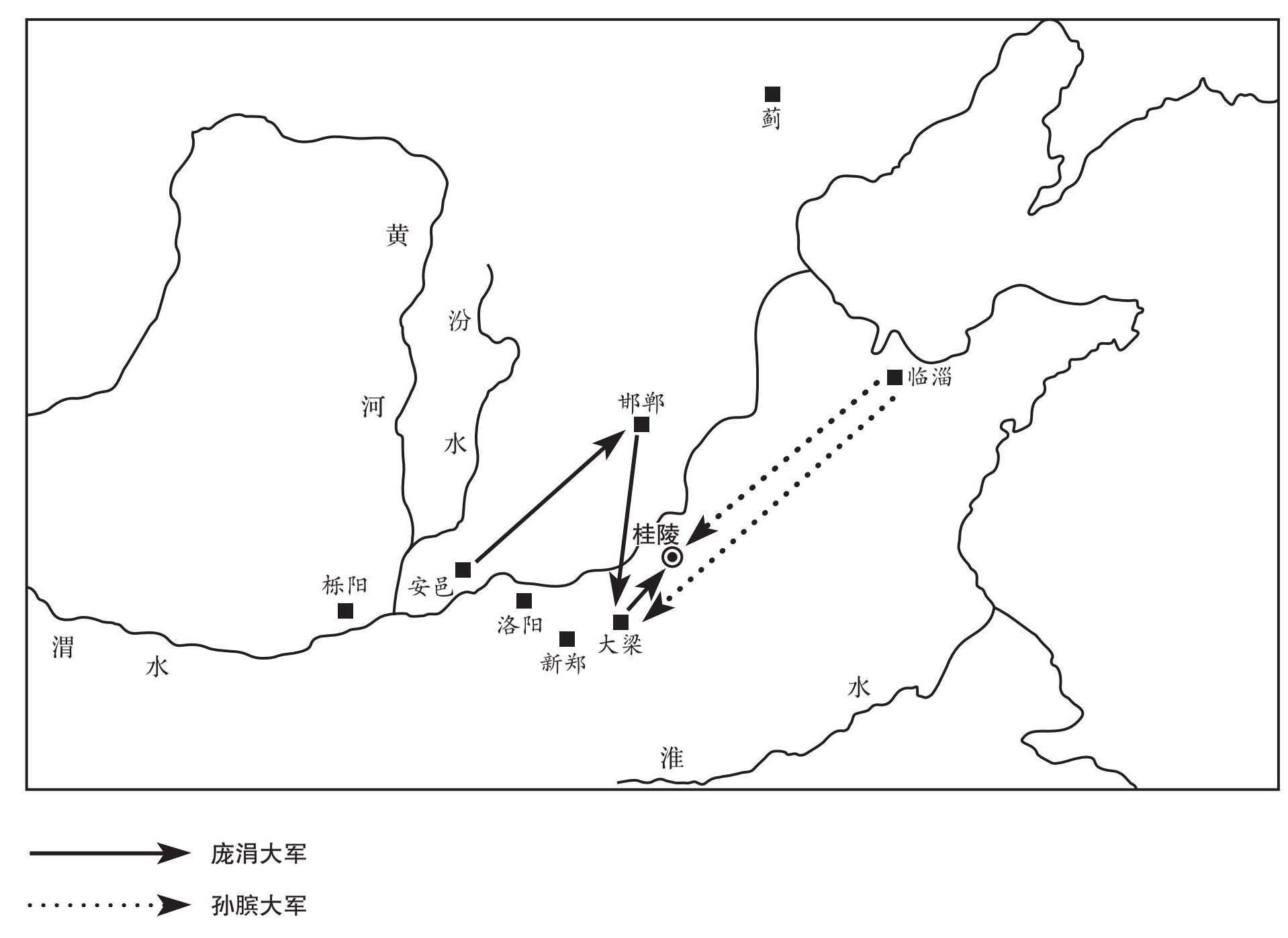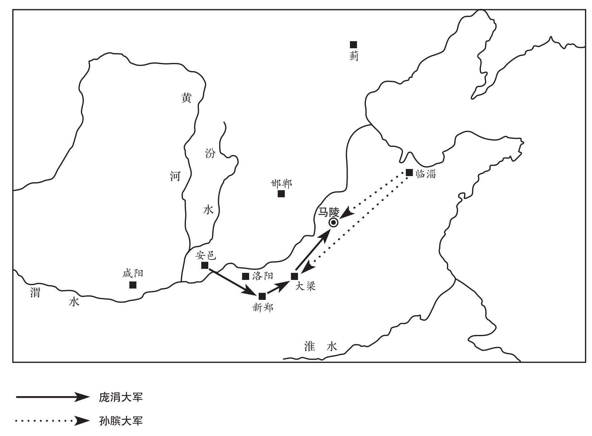 漆黑的原野上,魏军的铁甲骑兵风驰电掣般向北追击,步兵则从距离骑兵数里之遥的另一条大路兼程疾进。天亮时分,追到济水南岸,齐军堪堪渡河北窜。再次登高远望,庞涓已经清楚了,齐军的撤退路线是顺长垣、东郡北上,进入齐国境内的东阿。这条路大约七八百里,在东郡之前没有山地。而东郡到东阿的二百余里中,只有一片小山,也不足以设伏偷袭。况且,以魏军铁骑与武卒的追击速度,在东郡之前的五百多里一定能够截住齐军,决然不会进入东阿以南的马陵山地。
