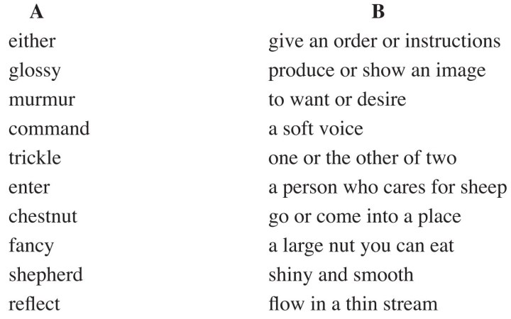 A. Vocabulary matching—Match the word from the poem in A with the meaning in B.