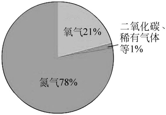 正常的空气(大气)成分按体积计算(见图2.4)如下:氮(N 2 )约占78%,氧(O 2 )约占21%,稀有气体约占0.94%(氦He、氖Ne、氩Ar、氪Kr、氙Xe、氡Rn),二氧化碳(CO 2 )约占0.03%,还有其他气体和杂质约占0.03%,如臭氧(O 3 )、一氧化氮(NO)、二氧化氮(NO 2 )、水蒸气(H 2 O)等。