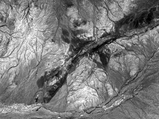 ◎图1.19 这是美国航天局(NASA)网站公布的地球上已知的最古老岩石(同位素测定为43.74亿岁)的发现地——澳大利亚杰克山的太空照片,但这一说法目前还存在争议