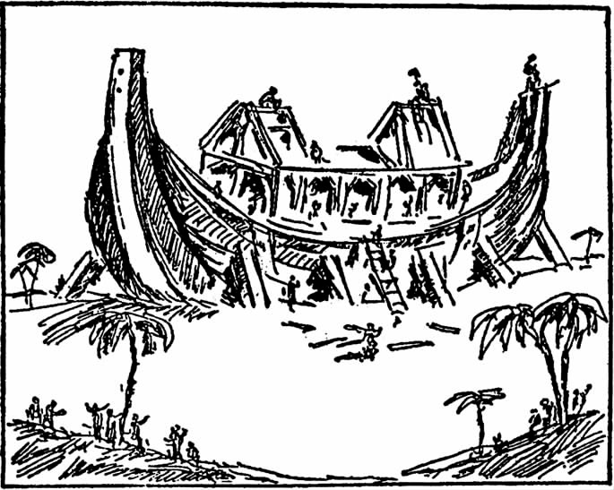 我们通过运河的那一天运气还不错,阳光明媚,我的心中充满了感激。但我还是忍不住想象,如果下了雨这里会是什么样子。但是等到了湖面上,那里的景物真让人沮丧。这时,你会想起 诺亚方舟 ,理解诺亚在漂泊的过程中看到地球从视野中消失的那种感觉。你觉得自己好像航行在一片被淹没的原野之上,偶尔能看到露出水面的树梢,而那些枝丫毫无生气,枯萎的程度让人惊讶。就在不久以前,这些树木曾经享受生命、自由,并追求作为一种植物的快乐,虽然也会经历各种危险和疾病,但是至少它们活着,所以很愉悦。就在树底下,曾经集中了一些快乐的土著人,他们跳着舞,欢快地弹着吉他,以甜美的热带水果为食,然后像苍蝇那样死去。男人、女人和孩子与各种各样的疾病作斗争,比如伤寒病、麻风病、牛皮癣,然后死去。这些疾病在今天是可以预防的。尽管如此,他们也像那些树木一样,享有宪法赋予的生存、自由和追求快乐的权利。他们的生活曾经无忧无虑,直到有一天,邪恶的白人粗鲁地闯进他们的家园,强迫他们穿裤子、刷牙齿,把他们的孩子送到红十字会接种,以预防伤寒病。