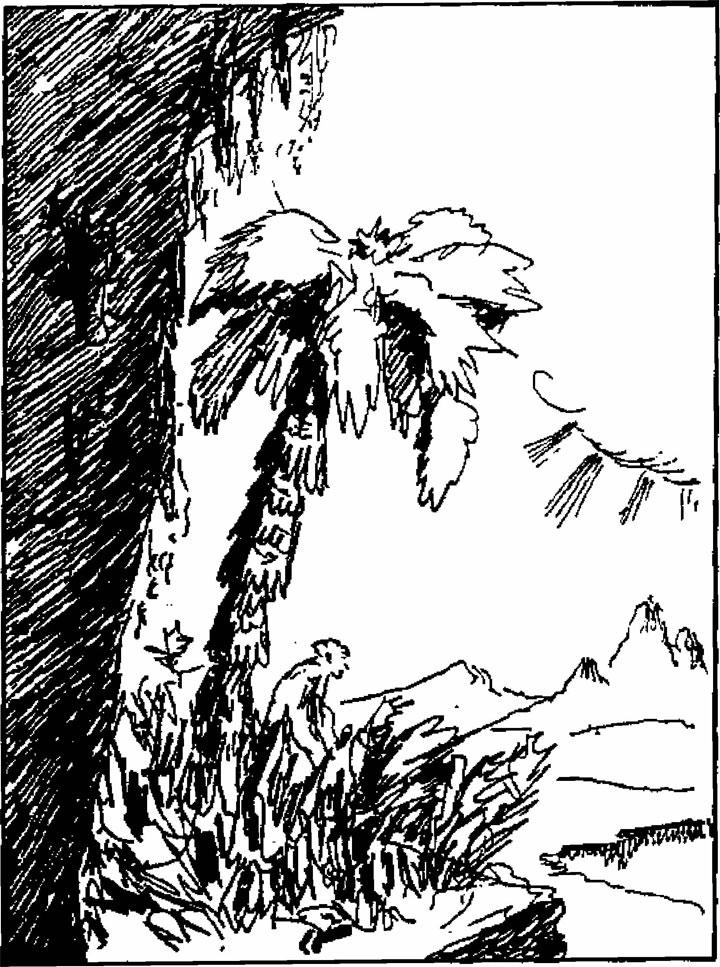 白天,他四处寻找食物;晚上,他被丛林中正在觅食的动物的响声吓得半死,然后躲进树洞或者一堆巨石的后面——那些巨石覆盖着厚厚的苔藓,巨石上还会有大个儿的蜘蛛。