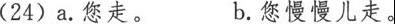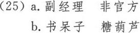 当然不是所有的[1+2]式里的单音成分都能分析成前缀,比如例(25b)中的例子。但是这些例子都有一个共同的特点:中心语的第二个音节都是轻声。前面说过,由轻声词构成的双音词不是一个实足双音词,因而不是一个实足双音步。我们称它为“残音步”(带轻声的双音词有时甚至只相当于一个单音词的长度,林焘1990)。如果它们是“残音步”,那么一个残音步再加上一个单音词重新构成一个音步并不足为奇。至于这样组成的音步有什么性质,那是另外一个问题,需另文专述。
