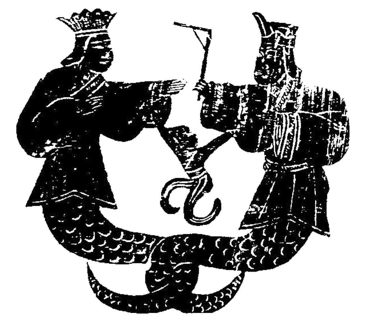 图1.2 伏羲女娲画像石拓片,出山东嘉祥