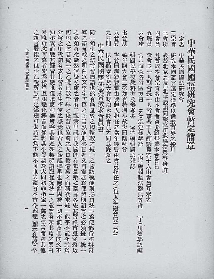 二、宗旨:研究本国语言,选定标准,以备教育界之采用。