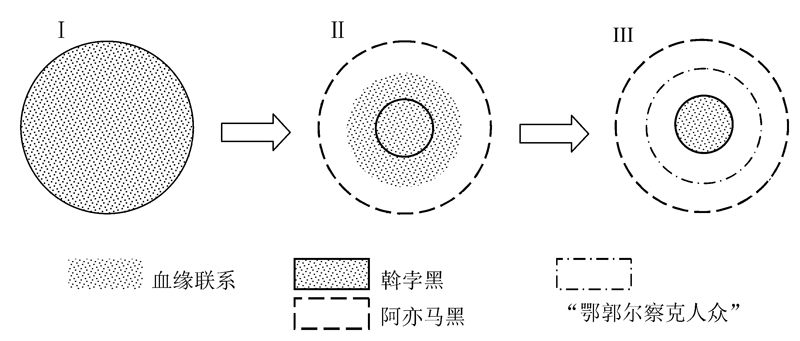 上述情况,完全适合于早期蒙古社会。或许就始于朵奔篾儿干和孛端察儿的时代,氏族贵族明确无误而且不容随便羼入的血统世次,也就是姓氏观念,逐渐地从他们与其他氏族成员间普遍、但是湮远而淡薄的共同血缘观念中越来越突出起来。于是,冠以某个支系始祖之名的斡孛黑,例如撒勒只兀惕斡孛黑、兀鲁兀惕斡孛黑、忙忽惕斡孛黑等等,先是在作为整个那支游牧人群冠名的同时,也用以兼指氏族贵族的家支,后来则逐渐趋向于专指该宗支世系及其成员。在斡孛黑的转义过程中逐渐被排除出它的覆盖面的那一部分普通氏族成员,转而成为阿亦马黑中间的一部分。