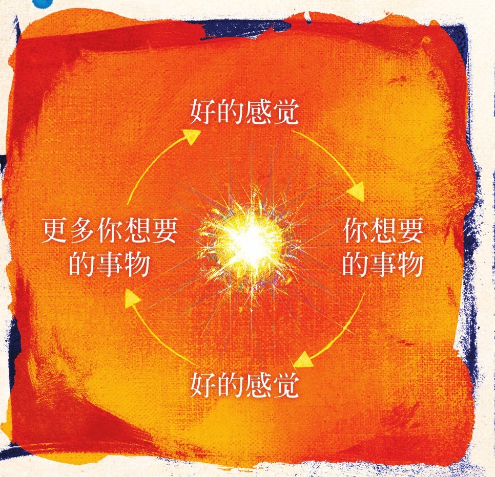 你想要健康,是因为健康的感觉很好,而生病的感觉不好;你想要钱,是因为能买到你喜欢的东西、能做你喜欢的事让你感觉很好,而当你买不起或做不到时,就会涌现不好的感受;你想要愉快的人际关系,是因为它们让你觉得很美好,而不顺遂的关系会让你觉得很糟;你想要快乐,是因为快乐让你有美好的感受,而不快乐则让你感觉不好。