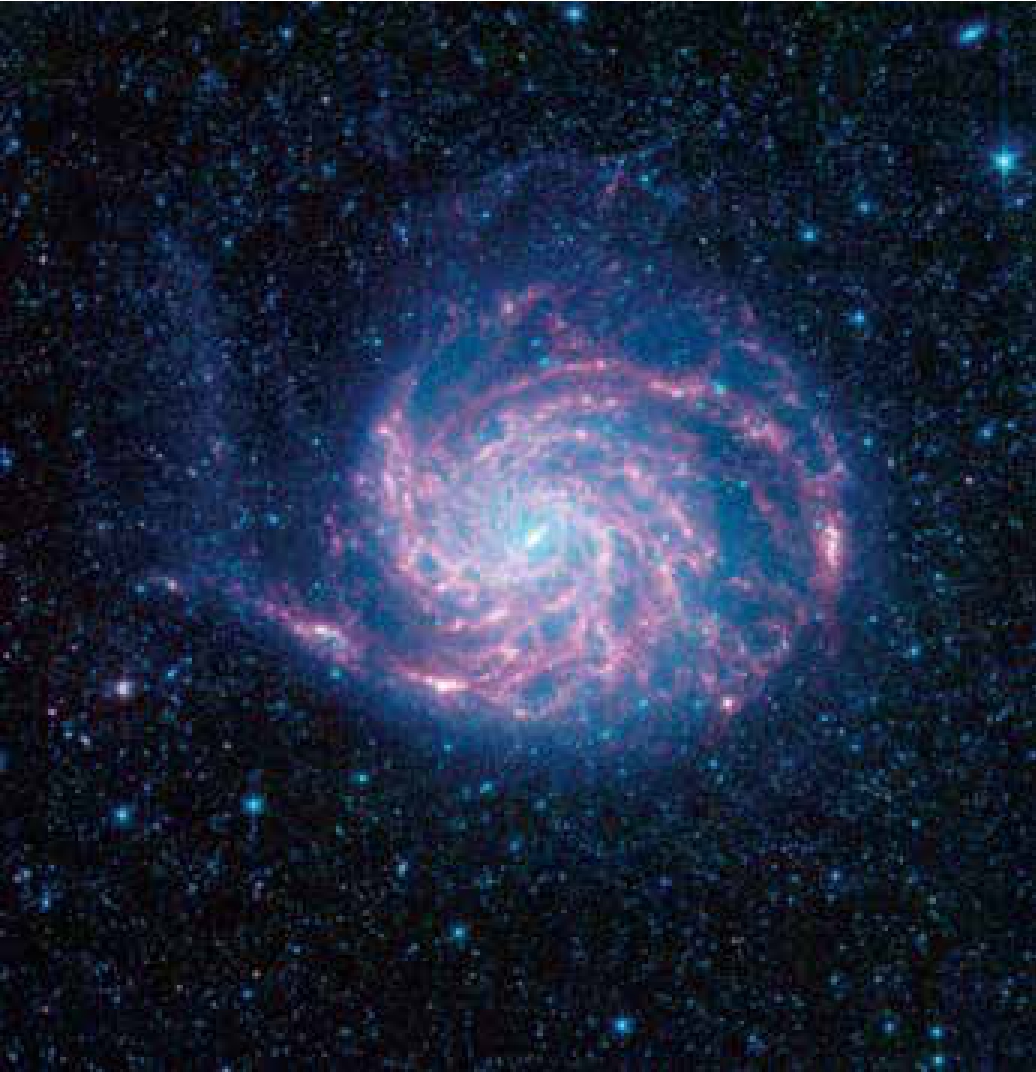图13 斯皮策空间望远镜下的M101(M101为原始旋涡星云之一,由19世纪罗斯勋爵的反射望远镜拍到)