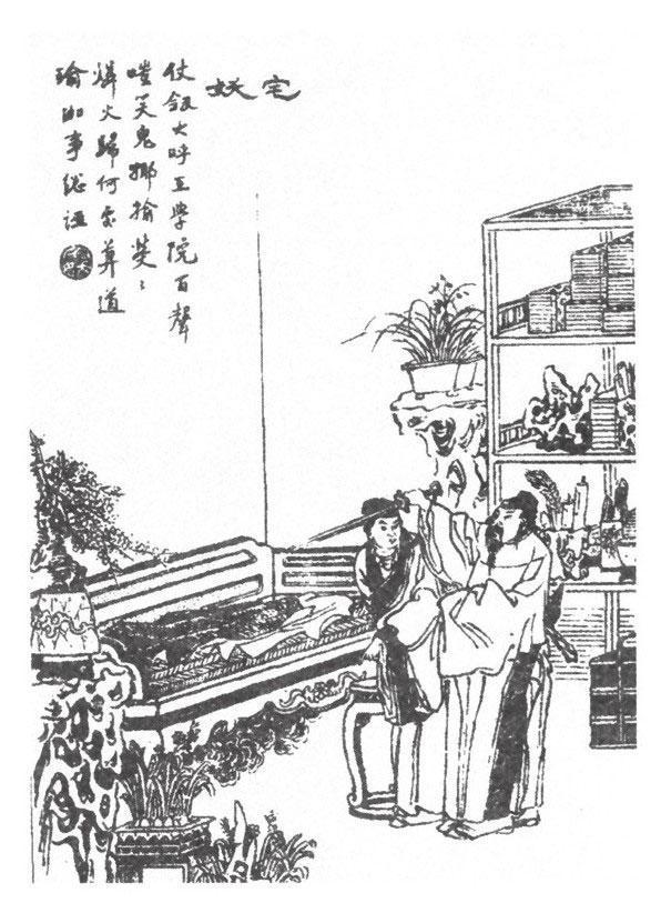 长山李公,大司寇之侄也。宅多妖异。尝见厦有春凳,肉红色,甚修润。李以故无此物,近抚按之,随手而曲,殆如肉软,骇而却走。旋回视则四足移动,渐入壁中。又见壁间倚白梃,洁泽修长。近扶之,腻然而倒,委蛇入壁,移时始没。