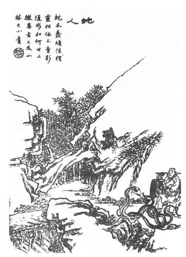 一夜寄宿山寺。既明启笥,二青亦渺,蛇人怅恨欲死。冥搜亟呼,迄无影兆。然每至丰林茂草,辄纵之去,俾得自适,寻复返;以此故冀其自至。坐伺之,日既高,亦已绝望,怏怏遂行。出门数武,闻丛薪错楚中窸窣作响,停趾愕顾,则二青来也。大喜,如获拱璧。息肩路隅,蛇亦顿止。视其后,小蛇从焉。抚之曰:“我以汝为逝矣。小侣而所荐耶?”出饵饲之,兼饲小蛇。小蛇虽不去,然瑟缩不敢食。二青含哺之,宛似主人之让客者。蛇人又饲之,乃食。食已,随二青俱入笥中。荷去教之旋折,辄中规矩,与二青无少异,因名之小青。衒技四方,获利无算。