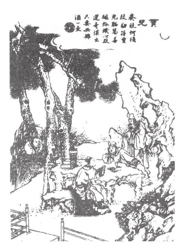 儿薄暮潜入何氏园,伏莽中,将以探狐所在。月初升,乍闻人语。暗拨蓬科,见二人来饮,一长鬣奴捧壶,衣老棕色。语俱细隐,不甚可辨。移时闻一人曰:“明日可取白酒一瓶来。”顷之俱去,惟长鬣独留,脱衣卧石上。审顾之,四肢皆如人,但尾垂后部,儿欲归,恐狐觉,遂终夜伏。未明又闻二人以次复来,哝哝入竹丛中。儿乃归。翁问所住,答:“宿阿伯家。”