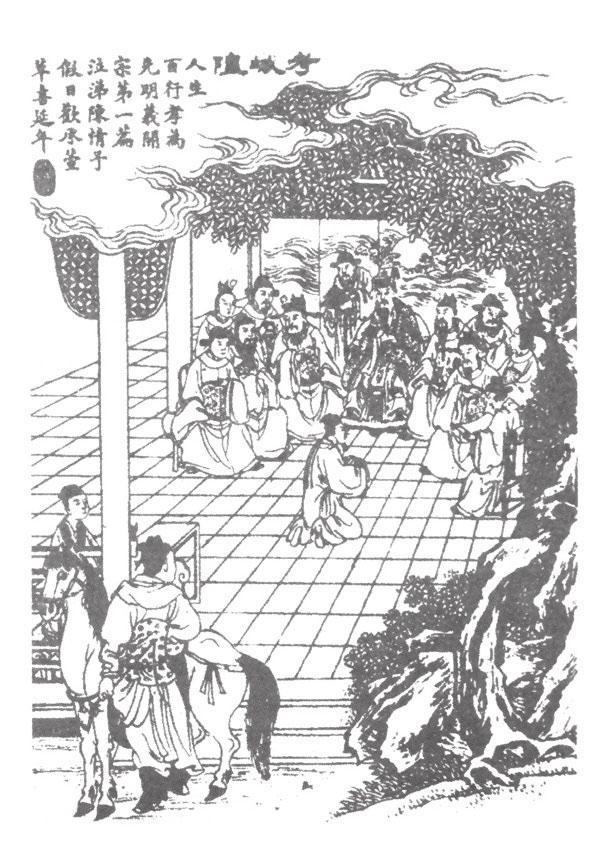 予姊丈之祖宋公,讳焘,邑廪生。一日病卧,见吏人持牒,牵白颠马来,云:“请赴试。”公言:“文宗未临,何遽得考?”吏不言,但敦促之。公力病乘马从去,路甚生疏,至一城郭,如王者都。移时入府廨,宫室壮丽。上坐十余官,都不知何人,惟关壮缪可识。檐下设几、墩各二,先有一秀才坐其末,公便与连肩。几上各有笔札。俄题纸飞下,视之有八字,云:“一人二人,有心无心。”二公文成,呈殿上。公文中有云:“有心为善,虽善不赏。无心为恶,虽恶不罚。”诸神传赞不已。召公上,谕曰:“河南缺一城隍,君称其职。”公方悟,顿首泣曰:“辱膺宠命,何敢多辞?但老母七旬,奉养无人,请得终其天年,惟听录用。”上一帝王像者,即命稽母寿籍。有长须吏捧册翻阅一过,白:“有阳算九年。”共踌躇间,关帝曰:“不妨令张生摄篆九年,瓜代可也。”乃谓公:“应即赴任,今推仁孝之心,给假九年。及期当复相召。”又勉励秀才数语。二公稽首并下。秀才握手,送诸郊野,自言长山张某。以诗赠别,都忘其词,中有“有花有酒春常在,无烛无灯夜自明”之句。
