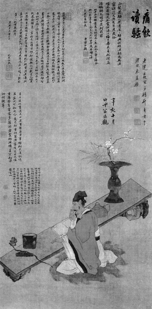 清代方文《梅季升招饮天逸阁因吊亡友朗三孟璿景山》诗:“追念平生肠欲结,杜康何以解吾忧。”