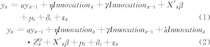 (1)式中,y it 表示i城市在t时期的经济增长变量,即城市地区生产总值(GDP)。y it-1 用于捕捉城市经济增长的持续性,反映经济增长变动趋势对经济总产出均衡值的动态影响。主要解释变量Innovation it 为i城市在t时期的创新要素集合,这里将其表示为受科技创新体系发展程度、国际创新资源利用程度、城市基础创新发展水平、城市制度创新力度综合影响的函数。系数η用于反映创新要素集合对经济增长的影响。Innovation it-1 为滞后一期的创新要素集合。系数γ反映创新要素对经济增长的持续性影响。X it 表示其他潜在影响因素,μ t 为时间的固定效应,δ i 为城市的固定效应,ε it 为随机误差项。