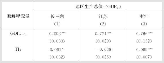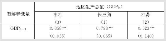 为研究创新对长三角经济增长的影响,本文在上述理论分析的基础上建立动态面板模型。该模型不仅考虑到创新要素对本期被解释变量的影响,还关注滞后一期的创新要素和内生被解释变量对本期的影响,即城市的创新要素和经济产出(GDP)在时间上具有的延续性。模型具体设定如下: