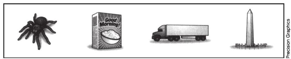 实验对象要通过记忆来判断其他几幅图片中的物体——食物、车辆、纪念碑,与给定的蜘蛛图片是如何排列的。如果回答正确,就能得分(判断所需的时长没有限制)。在这里,虽然不存在时间稀缺的问题,但是却有猜测稀缺(guess scarity)的问题——实验对象只能进行固定次数的猜测。与之前的实验一样,我们设计了猜测次数较少的“贫穷”小组和次数较多的“富裕”小组。