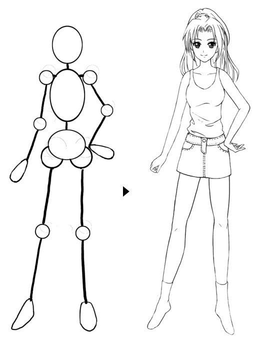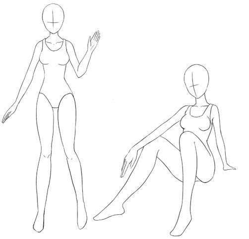 平时生活中,女性站立时的高度一般为7个头身,动漫中为了使人物显得更高挑、精致,我们会将人体比例拉长,增加至8个或者9个头身的高度。
