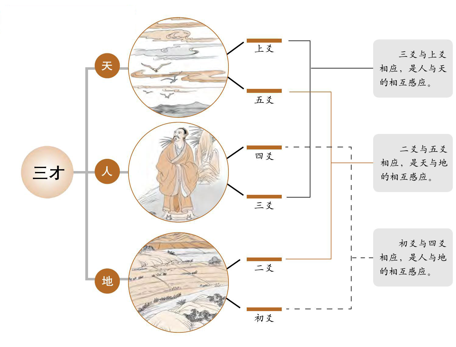 《易经》描绘的这种“映射”的规律把整个世界都囊括在内,使所有事物都处于普遍联系的链条中。这种“全息性”或“相互感应”的宇宙思维模式为人们构建了一个包罗天、地、人、事、物在内的不可分割的世界。