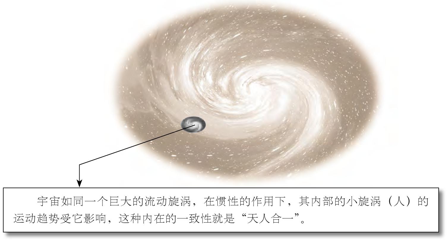 古人将人和自然看成一个有机整体,认为人和宇宙万物都存在着密切的联系,人是万物之“灵”,是宇宙之精华,每个人都是一个小宇宙。“天人合一”是大小“两个宇宙”之间的固有联系和内在统一。