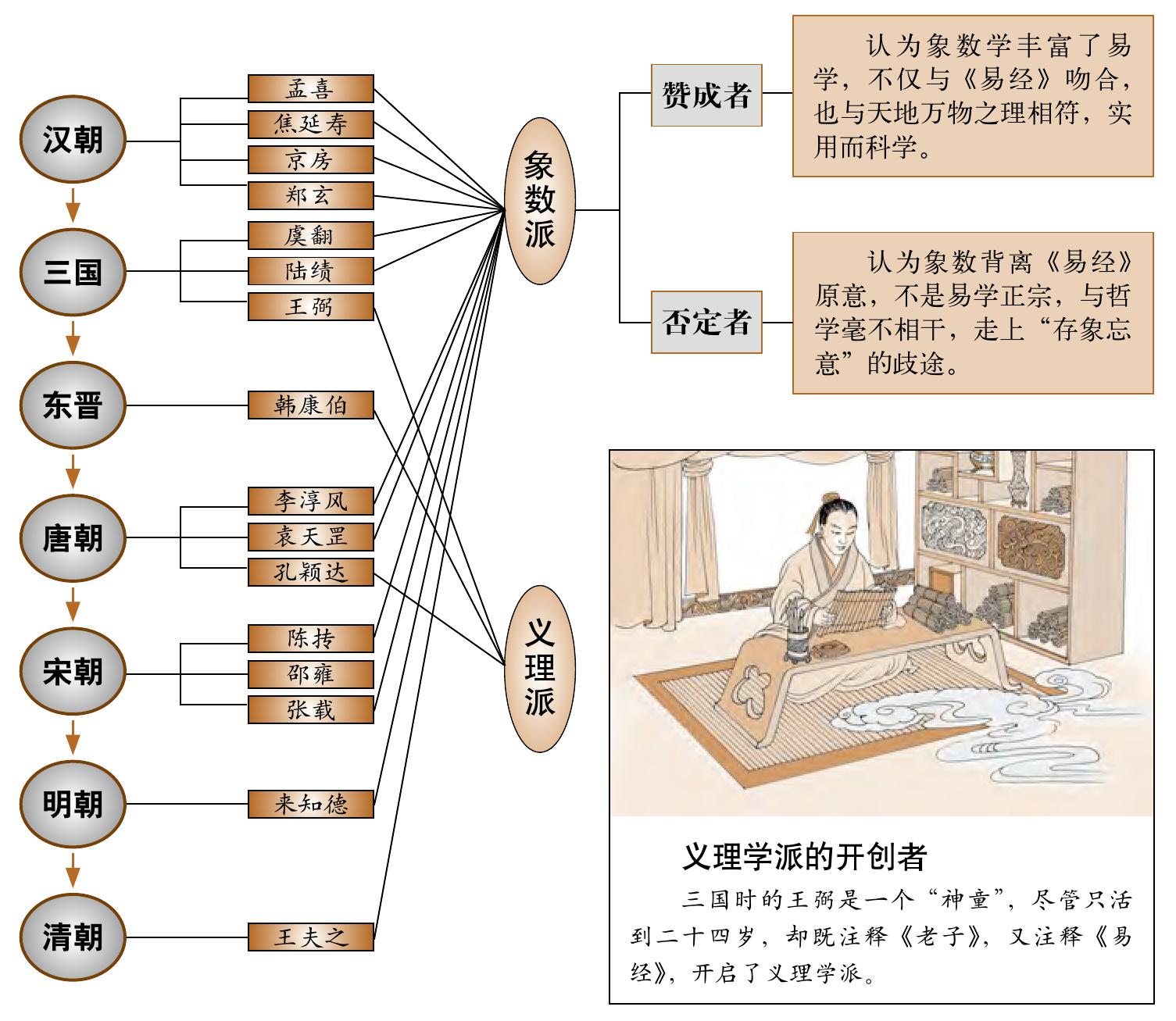 汉末儒生以象数解《易经》,过于追求卦辞、爻辞与卦象的一一对应,这使得他们的体系变得非常复杂。孔子写易传时就出现了义理派,但成体系的义理派开始于三国时的少年天才王弼。王弼针对当时象数学派的弊病,提出了“一爻为主说”“爻变说”和“适时说”,驳斥汉儒牵强附会的“按文责卦”的方法,主张着重领会和把握《易经》的根本义理。北宋王安石等人则从历史角度解《易经》,不追究卦象本身的意义,而是引用历史事实证明《易经》理论的正确性。