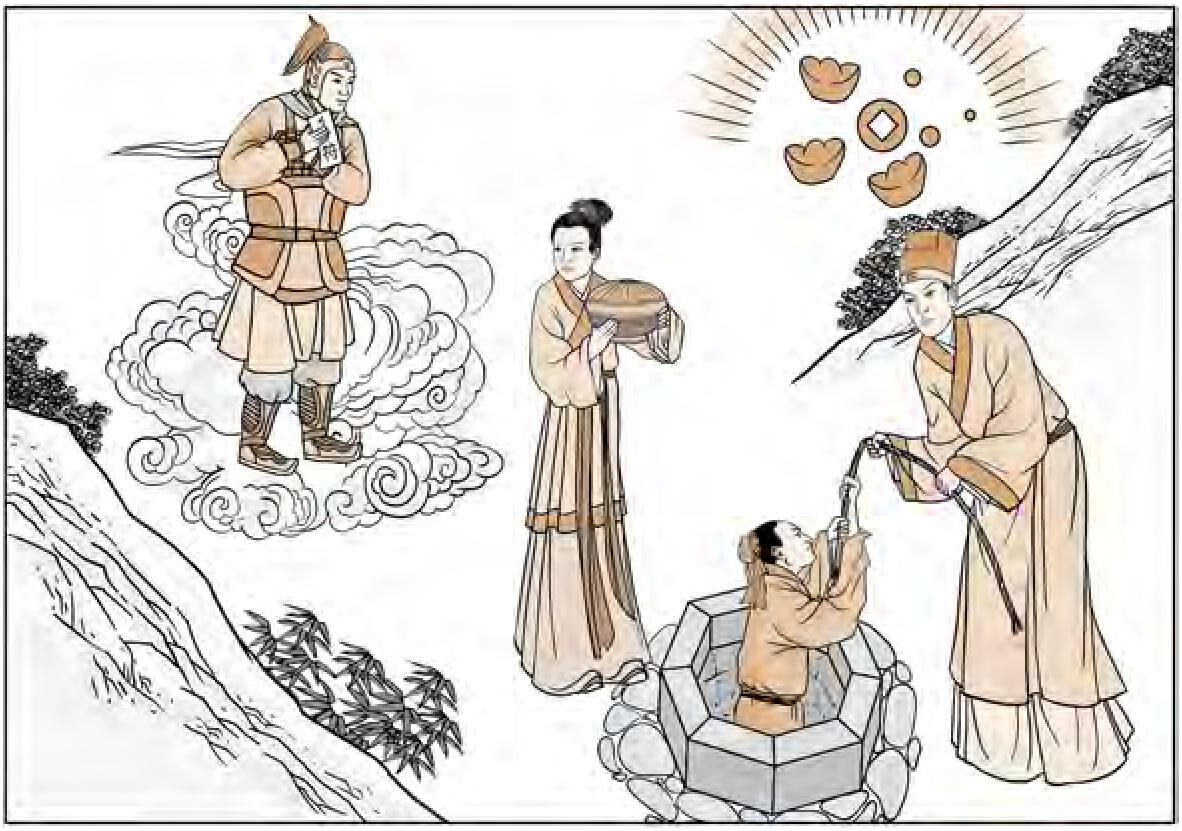 井水永远干净,象征美德。但打水的水桶可能倾覆,所以平静中暗藏着凶险。得井卦者如同井水一样,不枯不竭,不满不溢;不通江河,却是活水;所求不多,只想持平;与世无争,没有风波。