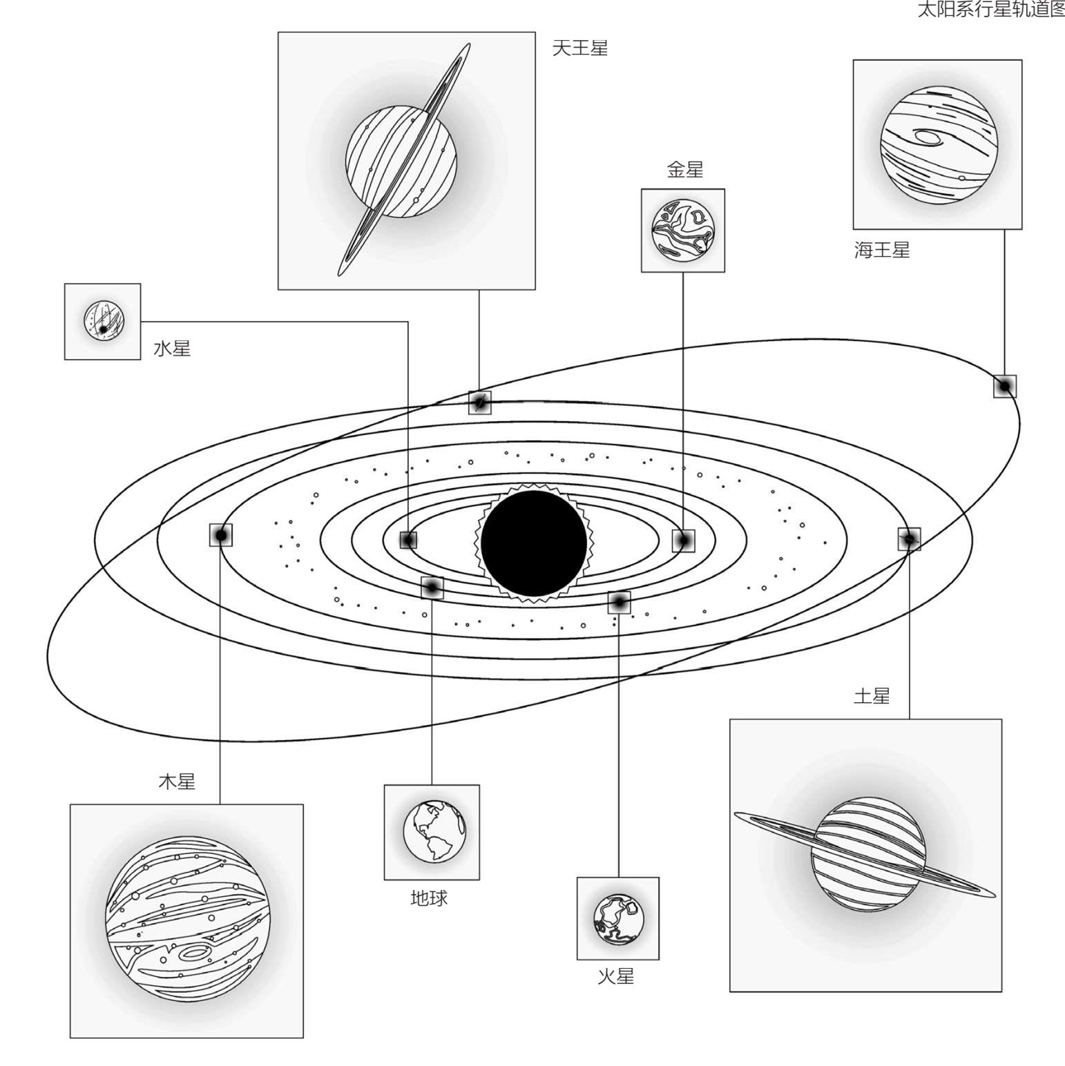 围绕太阳运行的,不仅仅是地球,还有其他行星。这些星球不会发光,之所以明亮是因为反射了太阳光的缘故。行星都在不断运动。还用刚才的那个比拟,距离9英尺太阳最近的两颗行星是水星和金星,它们距离太阳分别是124码和230码。第三位的是地球,比地球更远的是火星、木星、土星、天王星、海王星,它们距离太阳分别是488码、1 672码、3 767码、6 169码和9 666码。在这些行星之间,还有无数更加细小的颗粒漂浮,它们就是小行星。此外,就是一些气体、尘埃或者彗星之类的。除了这些天体,宇宙之间的虚空还是冰冷而毫无生机的。至于刚才提到的离我们第二近的恒星,在这个比例模型中,在4 0000英里之外,其他恒星则在几亿和几十亿英里之外呢!