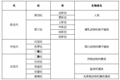 显生宙地质年代与生物历史对照表