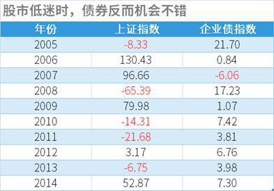 看看下图,2005年、2008年和2011年对于上证指数而言都是悲催的年份,但如果你在这段岁月能够远离A股并持有在沪、深两地交易所交易的企业债,那么不但能规避下跌,还有希望获得双位数的年回报——这就是资产配置的魅力——而对于普通投资者,利用基金尤其是ETF进行资产配置,几乎是不二之选。