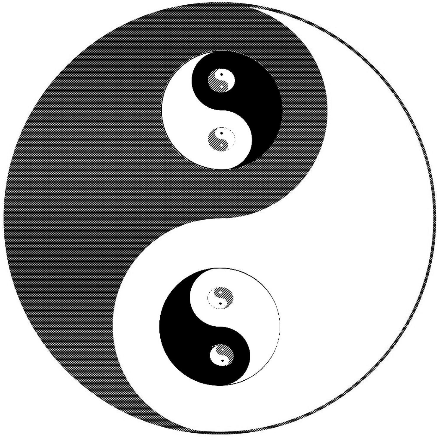 古哲们对此深不可测、奥不可议、妙不可言之形而上下间道境,勉强以可测、可议、可言之太极图(体)来形象之、图解之:纳千言万语于不语之中,含千义万理于一理之内,集千经万典于一典之下,状千物万体于一体之构,聚千征万象于一象之属,毕千符万图于一图之上,汇千科万学于本学——精气神一体、天地人一统、先后天一脉的性命之学——之门,以表形而下具体宇宙阴阳大化之道,一分为二又合二为一、既对立复统一的心物大辩证法至理,尽显阴阳交泰、变化万千,化化无穷、生生不息的阴阳演化之机。故此太极·阴阳结媾是宇宙及宇宙万物的根本结构——最初结构与最终结构。