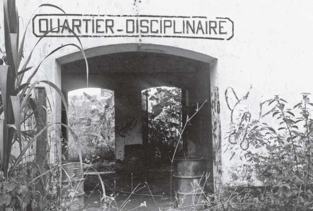 接近中午的时候,有个水泥工人载我们绕着圣洛朗监狱遗址的外围兜风。有几只走失的鸡在泥土上搔抓,旁边还有一辆翻倒的自行车,但附近似乎都没有人。我们的司机跟我们走过一道低矮的石砌拱门,然后就自顾自地离开了。监狱院子里,有一种大起大落的暴发城镇那种物在人亡的悲剧气息——就从这里,把人的灵魂给埋葬了,然后将躯壳送到魔岛。弗雷德和我走在这一片仿佛具有魔法的静默之中,小心不去打扰统摄着这里的神灵。