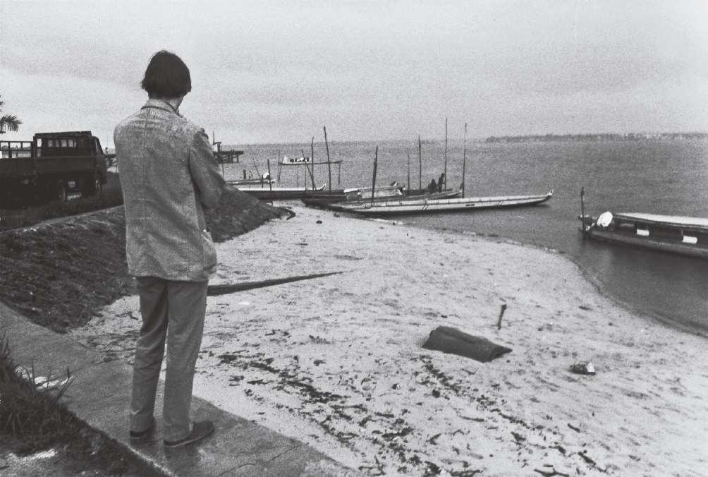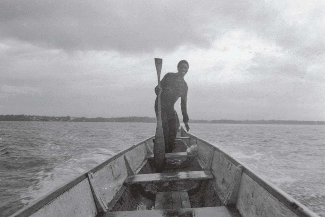 接下来几天,首都帕拉马里博的天气热得我们都抬不起头,总算找到了一个向导,开车载我们跑了150公里,到了法属圭亚那边境河西岸的阿尔比纳小镇。粉红色的天空雷电交加,犹如血管密布。我们的向导找到了一个年轻男孩,他答应带我们过马罗尼河到对岸,乘的是一种长长的、中间都挖空的独木舟。我们的行李之前装东西的时候都经过审慎考虑,所以很好处理。我们搭乘的独木舟划出去的时候下着小雨,随后没多久就升级为来势汹汹的倾盆大雨。独木舟吃水甚深,男孩递给我一把伞,同时警告我们,不要把手指伸进旁边的河水中。我到这时才突然发现河里成群游着一种小小的黑鱼。食人鱼!他看我迅速把手缩回来,不禁一笑。