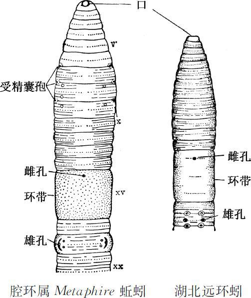 ①夏夜雨欲作,傍砌蚯蚓吟。念尔无筋骨,也应天地心 夏天傍晚天将下雨之前,路边墙脚边的“蚯蚓”呜呜咽咽地叫了起来,不曾想到像蚯蚓那样无筋无骨的小虫子,竟然也能感应天地之心。前两句写“蚯蚓”(实际是蝼蛄)吟唱的天气条件,是在天将下雨之前,这时空气中含水量增大,土壤返潮,比较湿润,适于蝼蛄活动。本书在66.1.长孙佐辅《山居雨霁即事》篇中讲述了蝼蛄雄虫鸣叫是为了召引雌虫,下雨前土壤返潮和雨晴后最适于蝼蛄活动,所以蝼蛄叫得特别欢。因为它喜欢潮湿,李贺把它称作湿蛄,他在《昌谷诗》中说,“嘹嘹湿蛄声,咽源惊溅起”。但卢仝受天人感应思想的影响,以为“蚯蚓”也和人一样,也能感知“天地的喜怒哀乐之心”,天将下雨,是天心表现为“哀”的意思,所以它就发出呜呜的哀鸣。 蚯蚓: 环节动物门Annelida寡毛纲Oligochaeta的动物,日常所见多属钜蚓科Megascolecidae的种类,如湖北远环蚓Amynthas hupeiensis(Michaelsen)(图440)等。又名螼螾(《尔雅》),蚯蚓(《礼记·月令》),蜿蟺、曲蟺(崔豹《古今注》),蛐蟮、曲善等。《礼记·月令》:仲夏之月,“蝼蝈鸣,蚯蚓出。”说明蝼蝈(蝼蛄)和蚯蚓是两种不同的动物;蝼蝈鸣叫的时候,常常可以看到有蚯蚓出土的现象。但晋人崔豹在《古今注》里作了错误的解释:“蚯蚓一名蜿蟺,一名曲蟺,善长吟于地中,江东谓之歌女,或谓之鸣砌。”崔豹《古今注》在古代是一部名著,影响比较深广。宋大文豪苏轼在《定慧院颙师为余竹下开啸轩》诗中还说:“食土蚓无肠,亦自终日叫。”著名药物学家寇宗奭也说蝼蛄“声如蚯蚓”。直到宋代俞琰在《席上腐谈》一书中才予以纠正:“崔豹《古今注》云:‘蚯蚓一名蛐蟮,善长吟于地下。江东人谓之歌女。’谬矣!按《月令》:‘蝼蝈鸣,蚯蚓出。’蟮与蝼蝈同处,鸣者蝼蝈,非蚯蚓也。吴人呼‘蝼蝈’为‘蝼蛄’,故谚云:‘蝼蛄叫得肠断,蛐蟮乃得歌名。’”蝼蛄只有雄虫翅膀上有发声器,通过振翅摩擦发声。孙氏《尔雅正义拾遗》:孙炎《尔雅正义》以为螜是雄者,喜鸣善飞。遗憾的是,明代李时珍在他的巨著《本草纲目》中还说:蚯蚓“其鸣长吟,故曰歌女”。因为在泥穴中发声,传到人耳中时呜呜咽咽好像很哀怨的样子,这是晚唐时期容易产生的一种思想感情。殊不知在雌蝼蛄听来,它唱的是非常欢乐的情歌呢。据笔者观察,蝼蛄在江苏北部每年从4月到10月,最迟在11月都会发声鸣叫,在秋季主要是召唤雌虫同穴越冬。