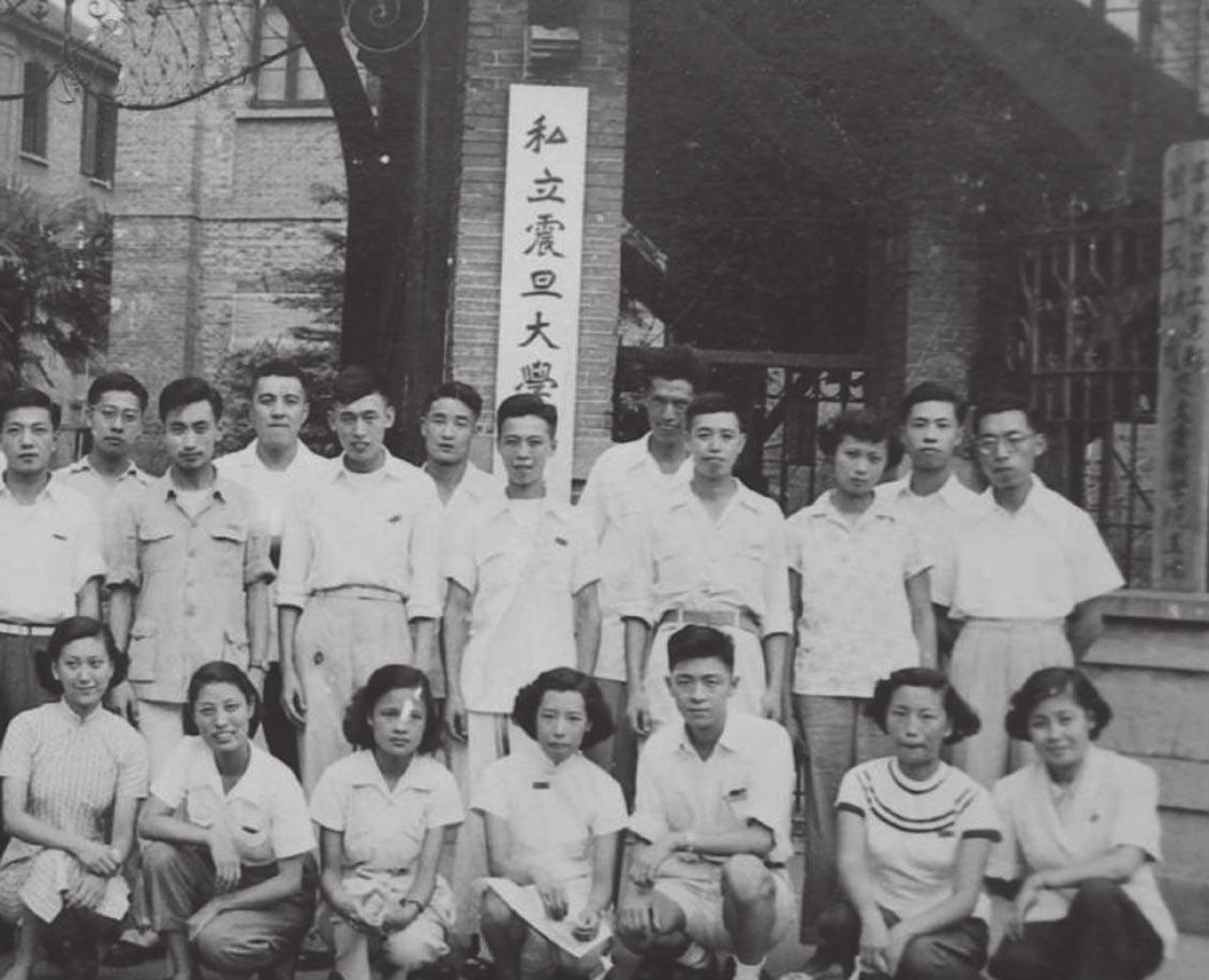 马相伯在私立震旦大学(复旦大学前身)前合影留念