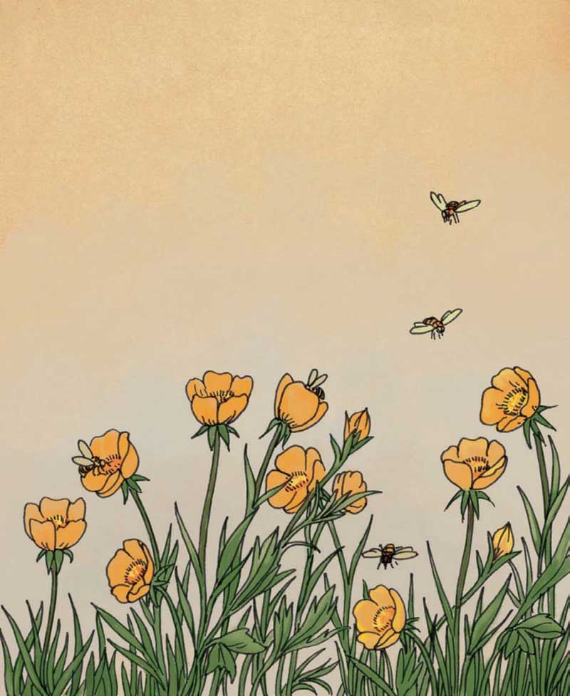 再过几天,蜜蜂蛹变成了小蜜蜂,便飞出来了。