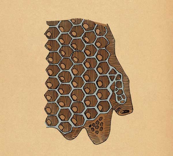 一个一个的小格子,好像一间一间的卧室,其实也好算蜜蜂的粮库。蜜蜂把吃剩的蜜藏在窠里,预备做冬天的食粮。