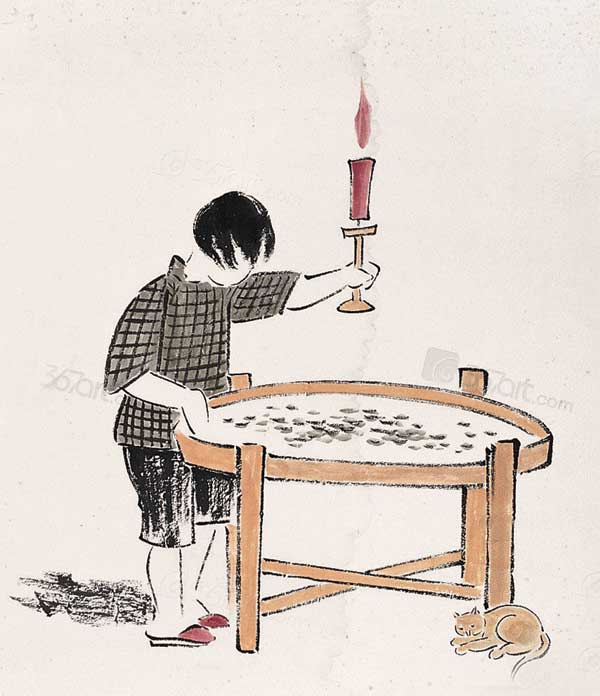 蚕才孵化,细小得很,像黑丝的断屑,那时候桑叶要剪碎了喂的。渐渐长大起来,大约十天工夫,眠期到了。同在一起的蚕,眠期有早有晚,并不齐一。眠的时候不吃桑叶,也不行动,经过四十八个钟头,就脱去了一层皮,重又活动起来,这是“头眠”。“头眠”以后十天,眠期又到了,这是“二眠”顺次到了“四眠”,那就快要吐丝结茧了。“四眠”的时候蚕身最长;过了“四眠”,反而缩短了,通体显得透明。蚕从初生到结茧,除了眠期,不停地吃着桑叶。过了四眠的蚕许多聚在一起,吃桑叶的声音刹,刹,刹,刹,好像一阵急雨落在芭蕉叶上。